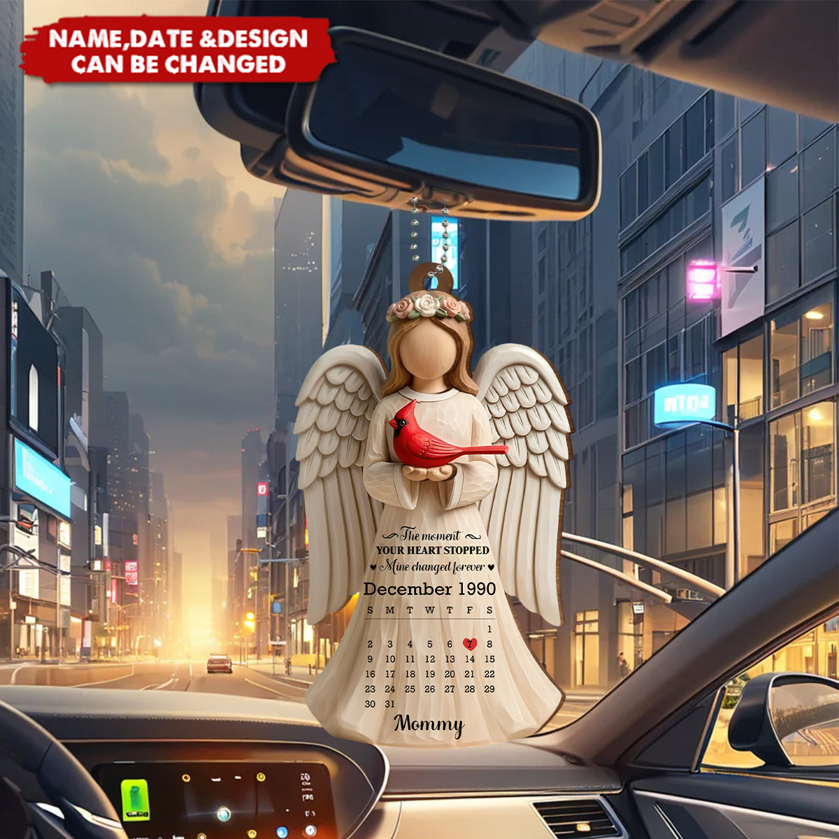 A heartfelt memorial to hold your loved one close. This custom wooden ornament, featuring the peaceful symbols of an angel and cardinal, is a tender tribute for any family. It serves as a personal and comforting reminder of a life cherished and a spirit that is always with you.