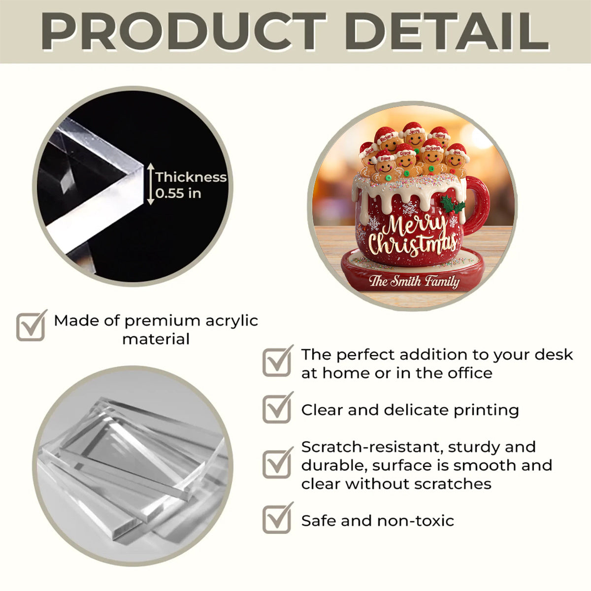 This custom-shaped acrylic plaque, engraved with ‘Merry Christmas’ and personalized with your family name, is a modern tribute to the love, laughter, and magic you create together. Whether displayed on your mantel, shelf, or entryway, it’s more than decor; it’s a daily reminder that the truest joy of the season is found in the people who share it with you. Here’s to the family that makes every Christmas bright.